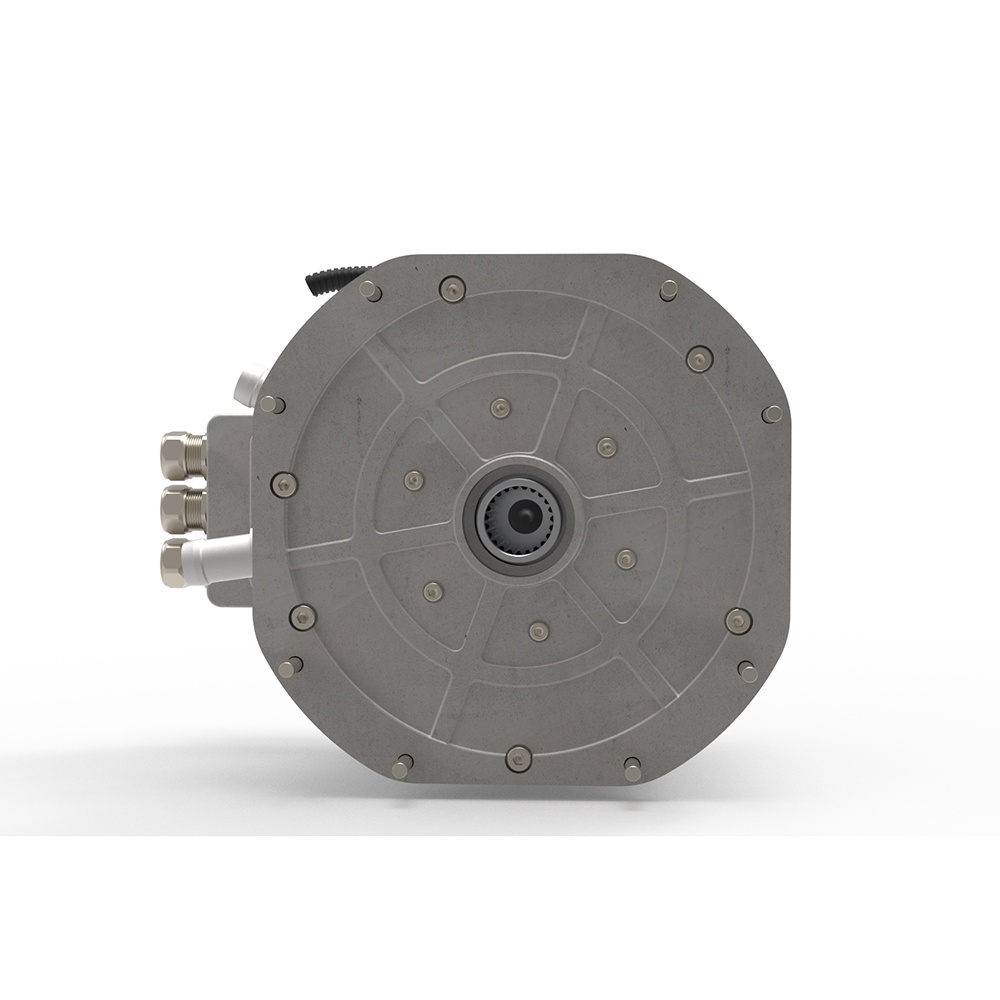 | 額定功率(KW):40 額定轉速(rpm):3000 額定扭矩(N.m):127 額定電壓AC(V):248 額定直流母線電壓DC(V):350 全功率運行最低母線電壓(V):400 最高效區(%):≥96.5% 高效區(%):≥90.0% 絕緣等級:H 防護等級:IP68 工作噪聲(dB):≤78 水嘴外徑尺寸(mm):25 峰值功率(KW):80 峰值轉速(rpm):4000 峰值扭矩(N.m):195 額定電流(Arms):132 最大相電流(Arms):300 最高轉速對應空載反電動勢(V):490 峰值功率持續運行時間(s):60 峰值扭矩持續運行時間(s):30 電機外形尺寸(mm):φ314*182 重量(kg):≤45 冷卻水入口溫度(℃):≤65 冷卻水流量(L/min):≥15 工作環境溫度(℃):-40/+85? |